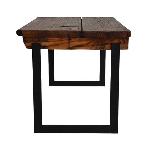 Il piano è in abete allorato spazzolato a fuoco con finitura in vernice ad acqua pagliettata cera.