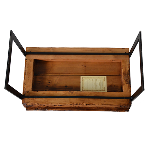 ITLE  IX : tavolino dattilo ricavato da una parte di portone dei primi del ‘900 con spessore piano di 8 cm.