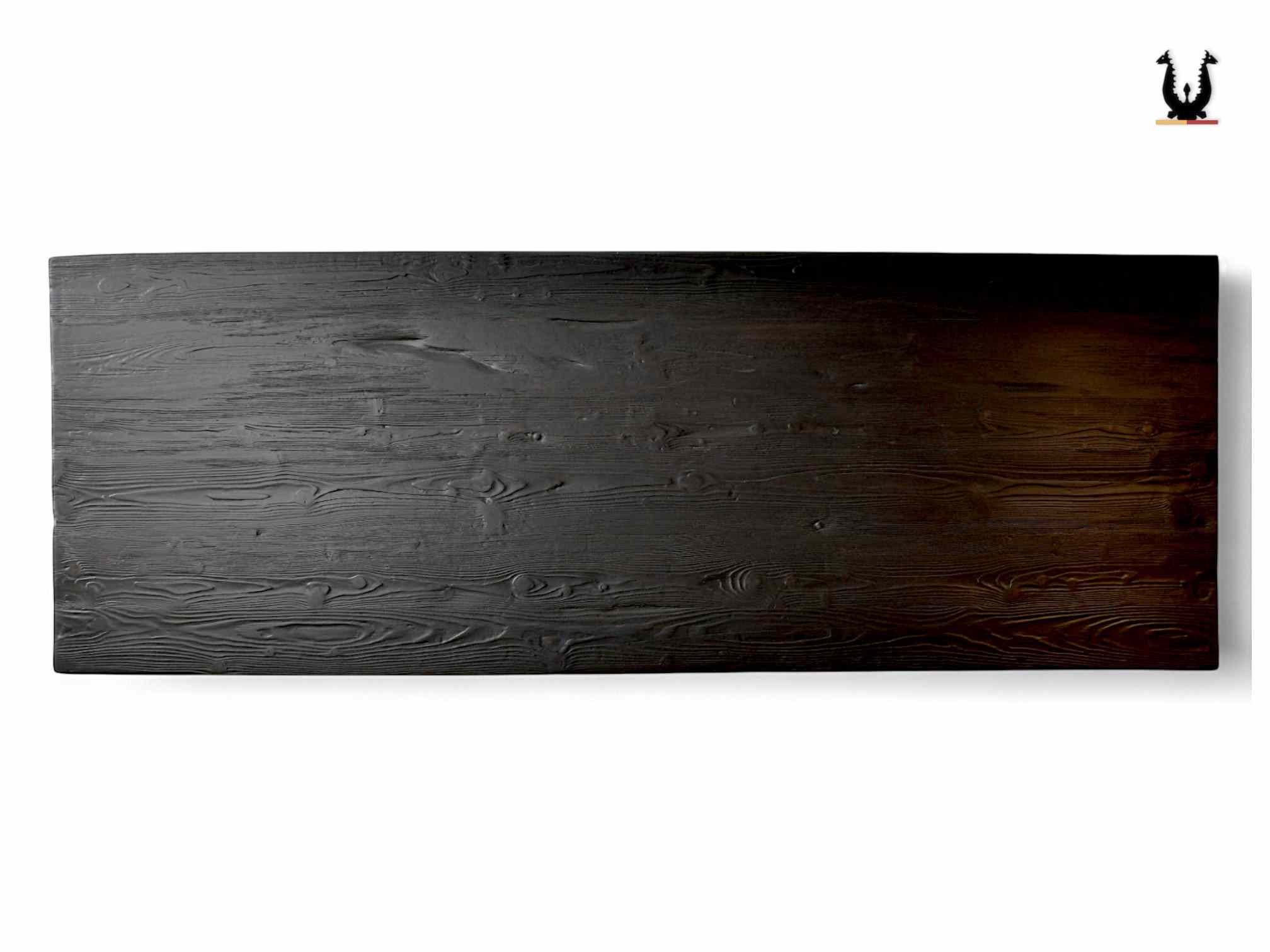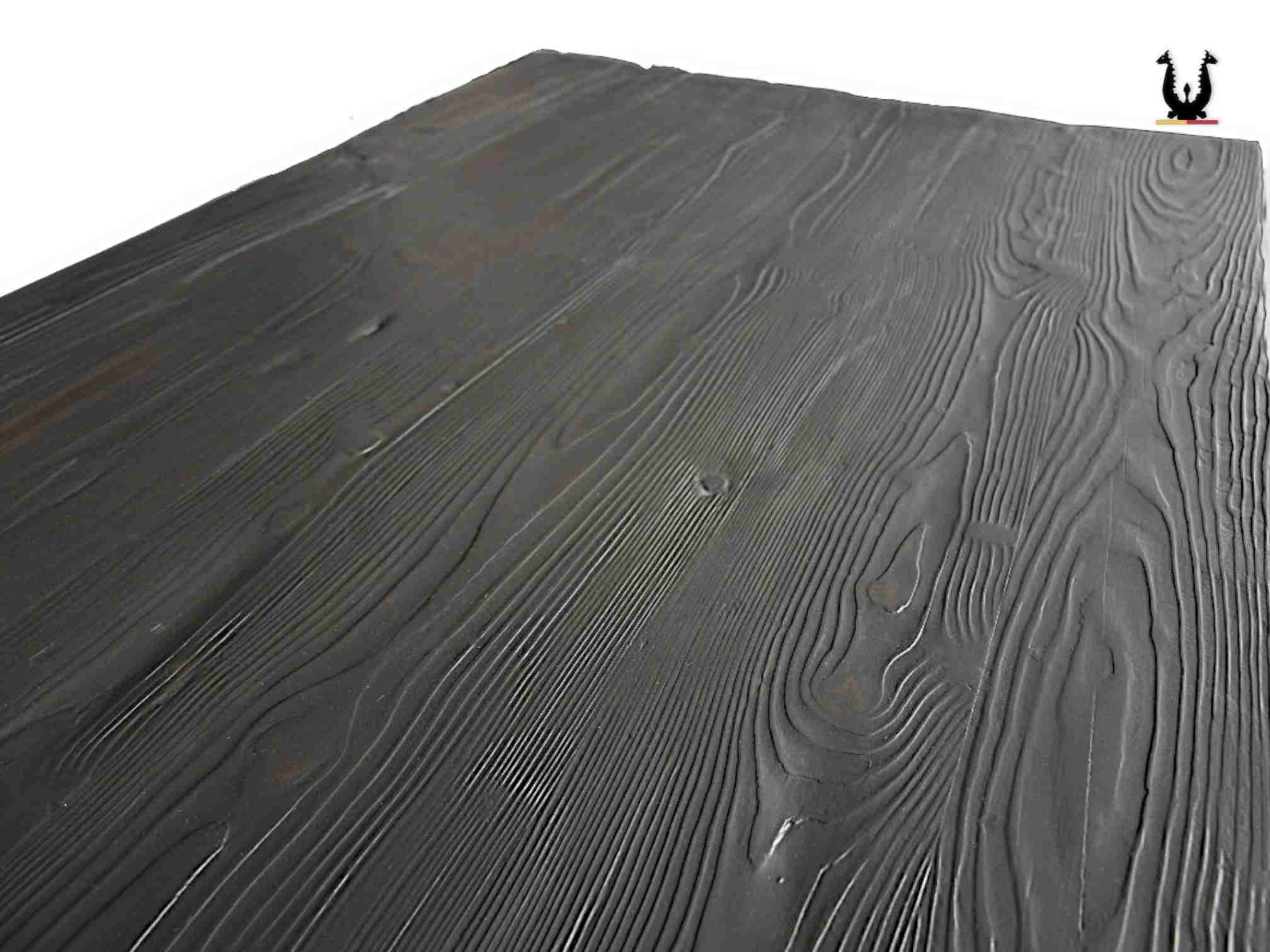 Il piano è in abete allorato spazzolato a fuoco con finitura in vernice ad acqua pagliettata cera.