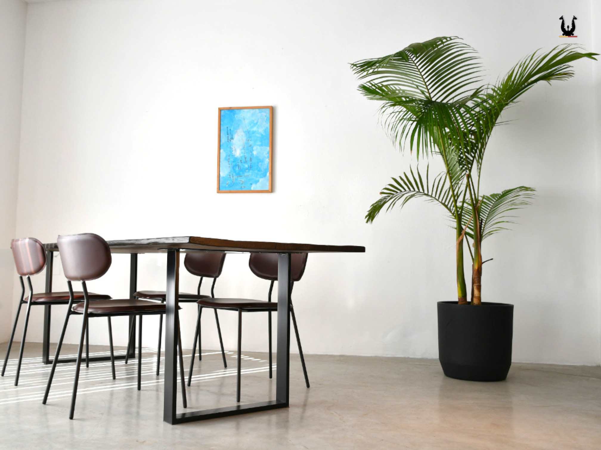 Il basamento è in ferro crudo piatto 80 x 10 mm con finitura naturale protettiva trasparente e finitura extra con colori RAAL.