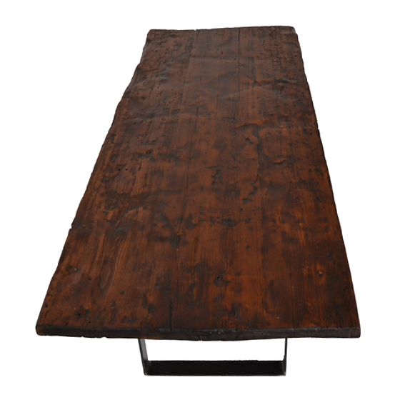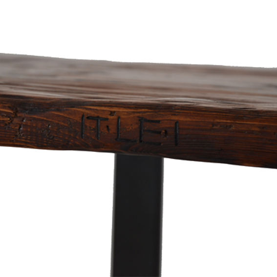 Il piano è in abete allorato spazzolato a fuoco con finitura in vernice ad acqua pagliettata cera.